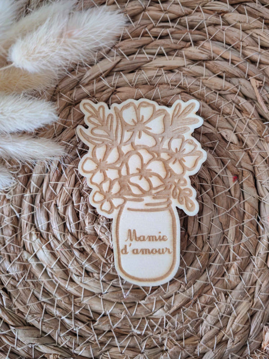 Bloc-notes en bois personnalisé – Mamie 🌼