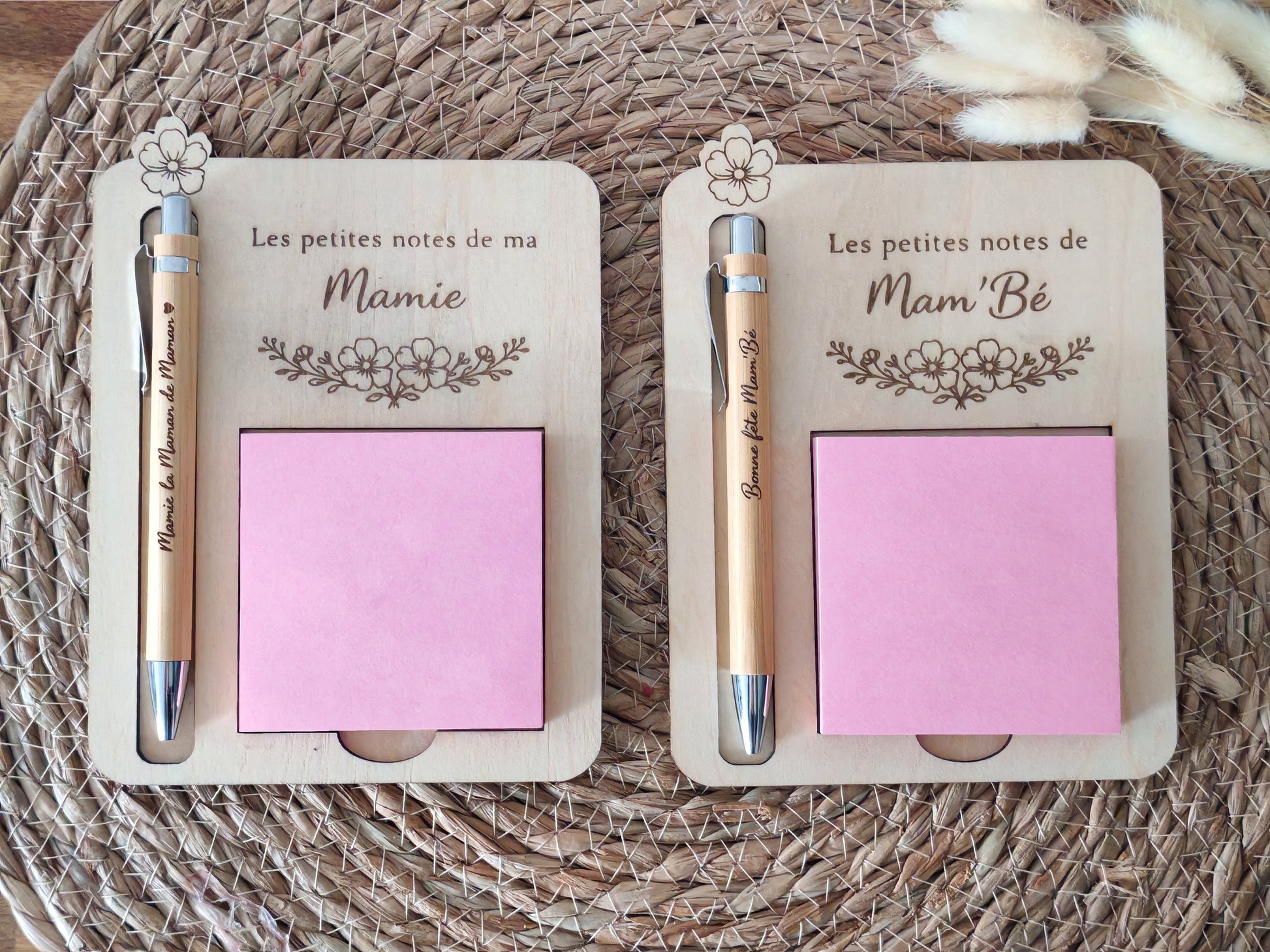 Bloc-notes en bois personnalisé – Mamie 🌼