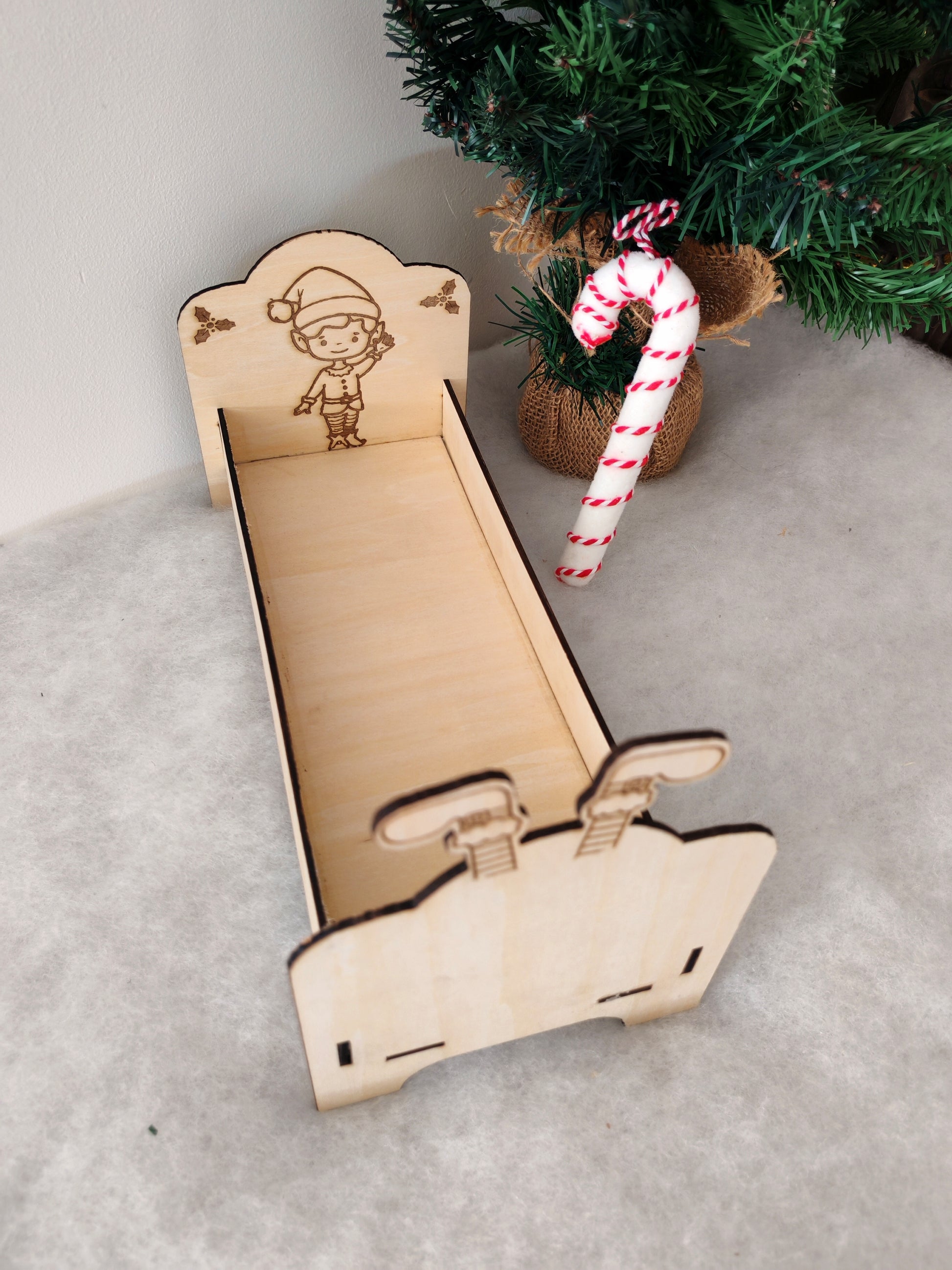Le lit du Lutin en bois qui peux être personnalisé. Il mesure 30 cm de long sur 11 cm de large.