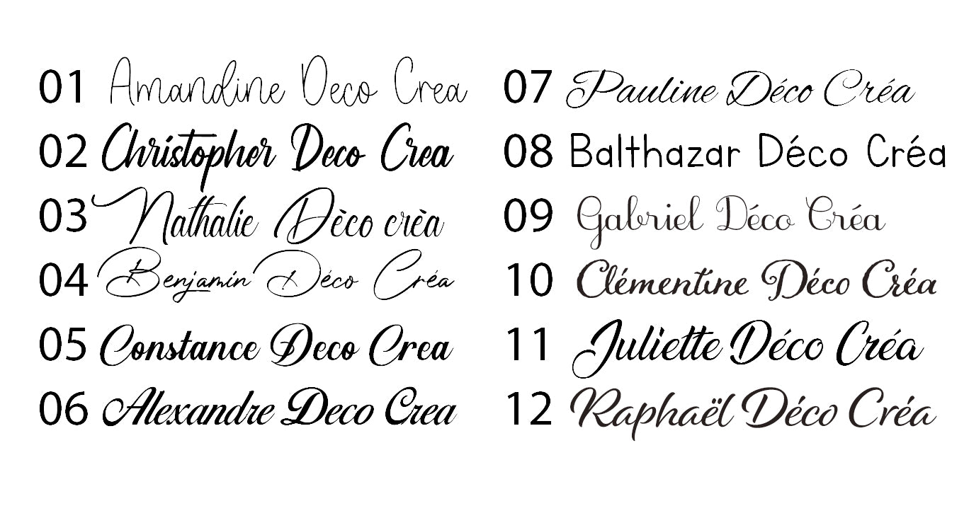 Pour rendre chaque création unique, nous vous proposons 12 styles d'écriture différents.