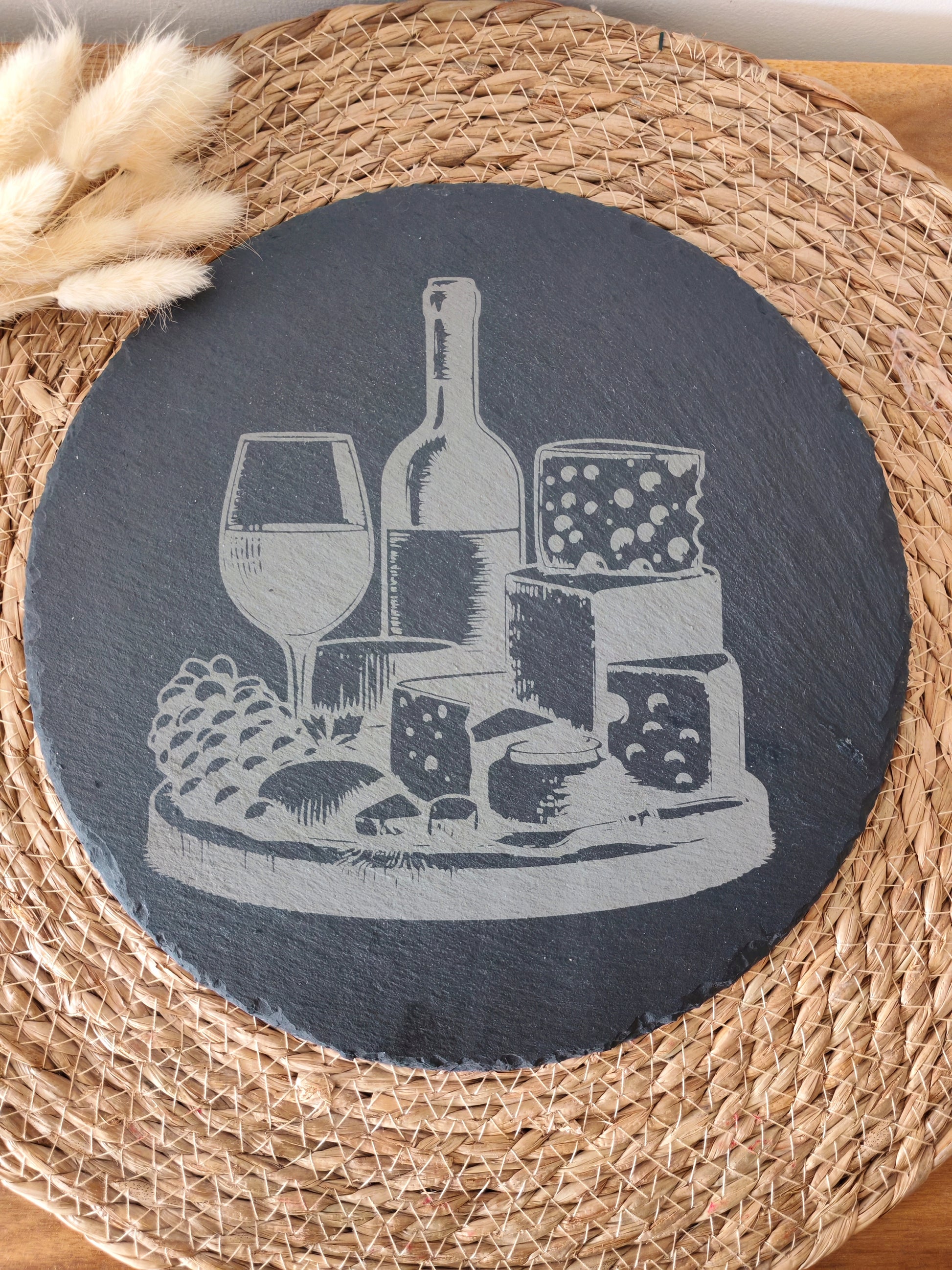 Plateau en ardoise de 25 cm. Gravé avec le design proposé ou personnalisé à votre guise.